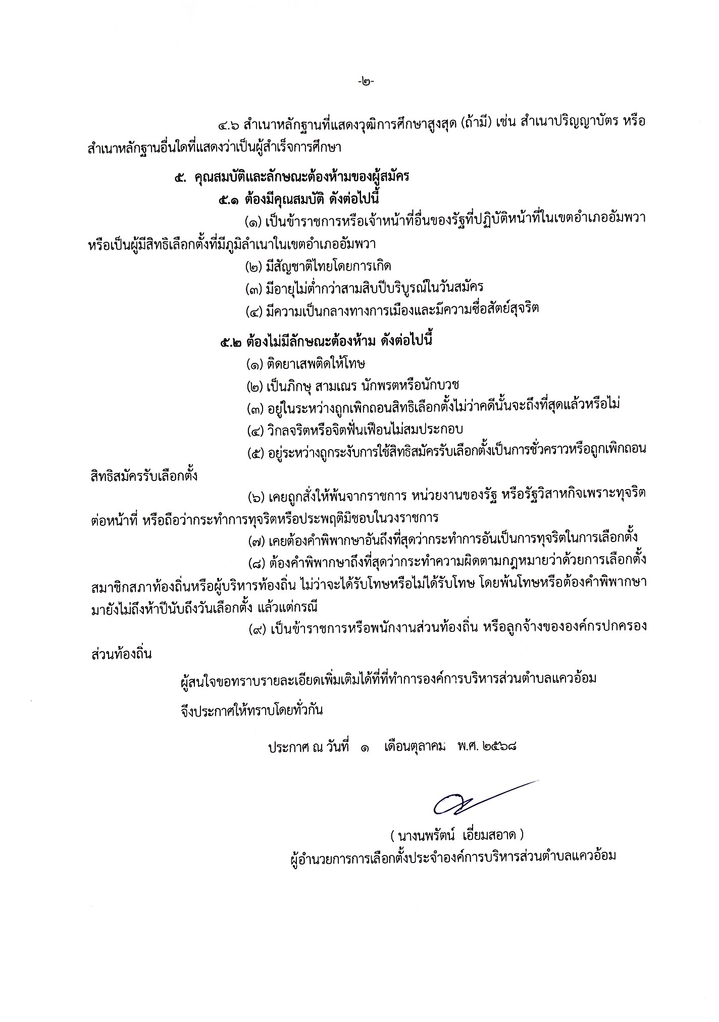 ประกาศผู้อำนวยการการเลือกตั้งประจำองค์การบริหารส่วนตำบลแควอ้อม